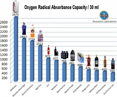 Ova vrijednost naziva se ORAC vrijednost (Oxigen Radical Absorbance Capacity ili kapacitet apsorpcije kisikovih radikala), a vjeruje se da unosom hrane s visokim brojem ORAC jedinica može povećati razina antioksidansa u tijelu i pomoći prevenciji starenja.
